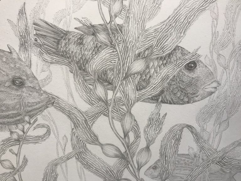 Tracings – Giant Kelp Macrocystis Pyrifera is a collaboration between artist Amanda Walker and IMAS Professor Catriona Hurd.
