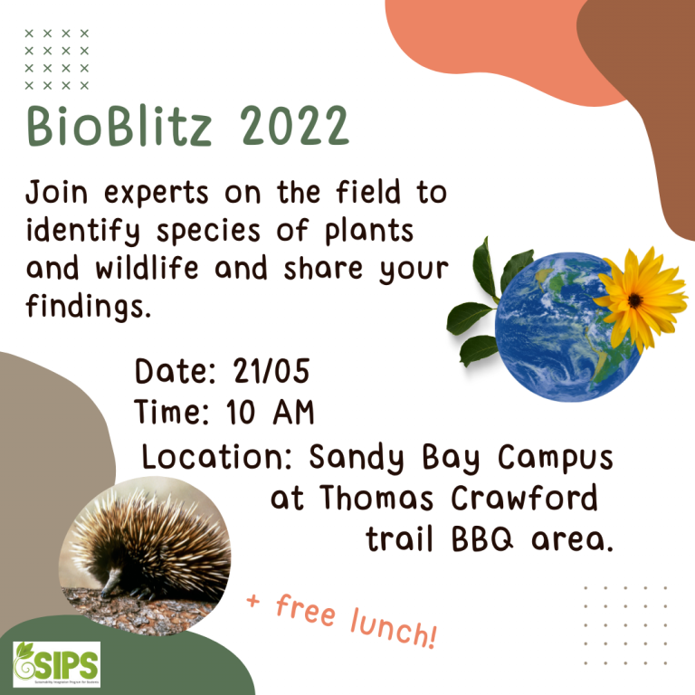 In celebration of Biodiversity Day, the UTAS Sustainability Team will be hosting a BioBlitz event on the Sandy Bay Campus.