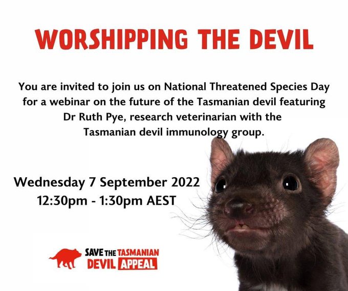 OnĀ National Threatened Species Day, Dr Ruth Pye, research veterinarian at Menzies, will be talking about the current state of the devil population, why it is important to save the species, and give an update on the development of a vaccine to protect devils from DFTD.